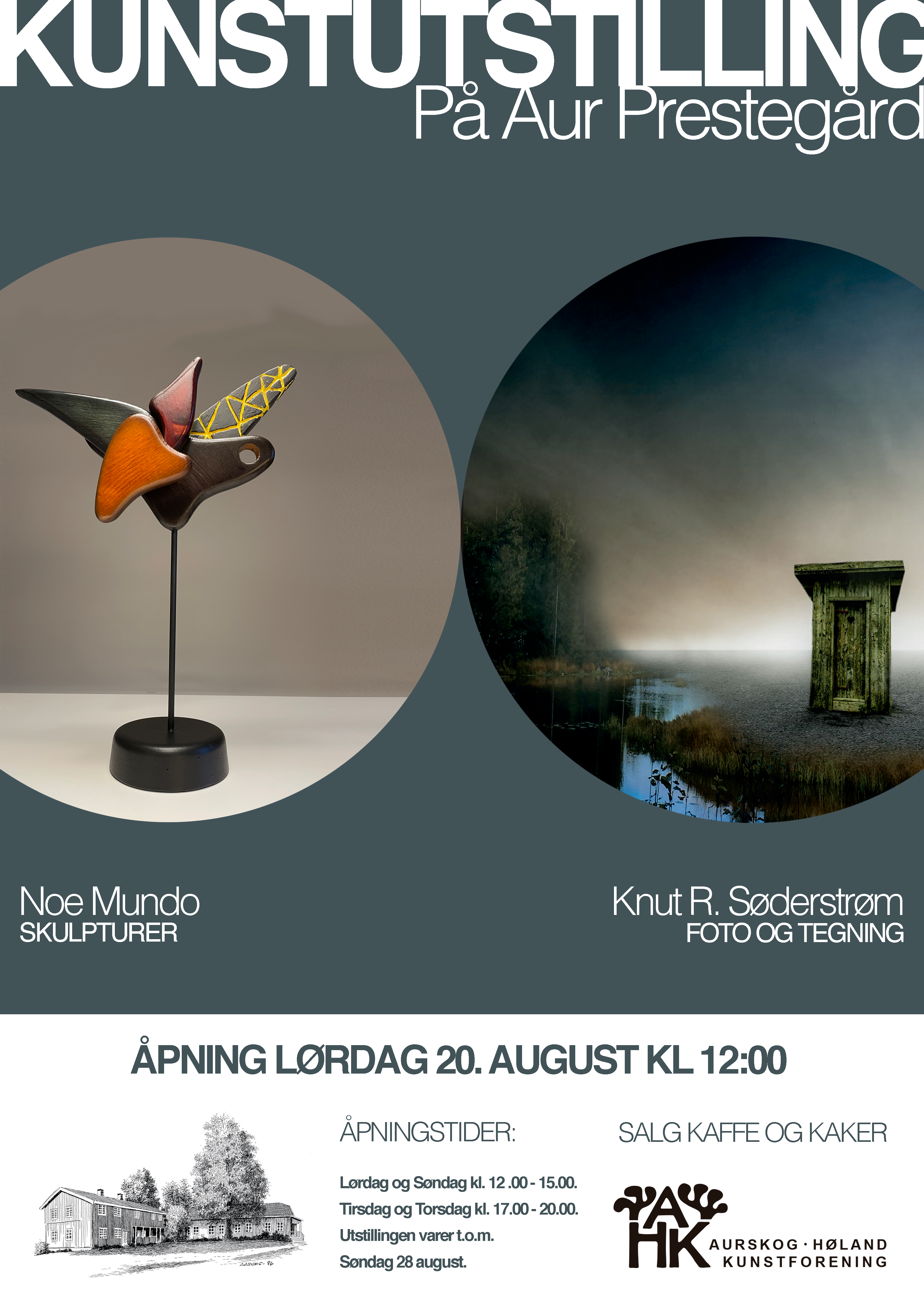 Utstilling med skulptur, foto og tegning av lokale kunstnere